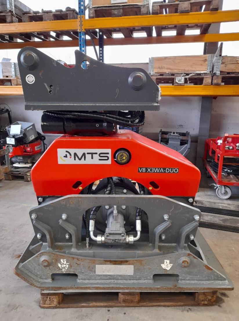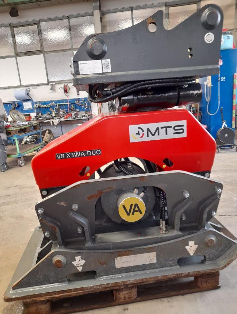 | [DUO] | zur Aufnahme verschiedener MTS-Wechselplatten. Ansteuerung der hydraulischen Wechselplatten-Verriegelung über einen Bedienhebel am Anbauverdichter (manuell) oder über das CPX-Terminal in der Baggerkabine. |